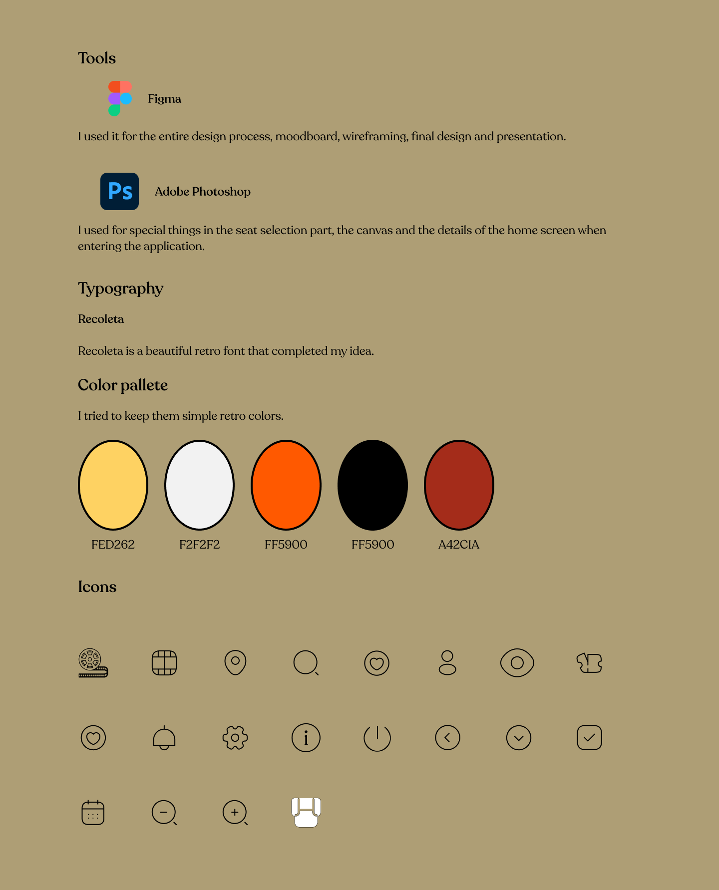 I tried to combine modern icon design with retro colors and font.